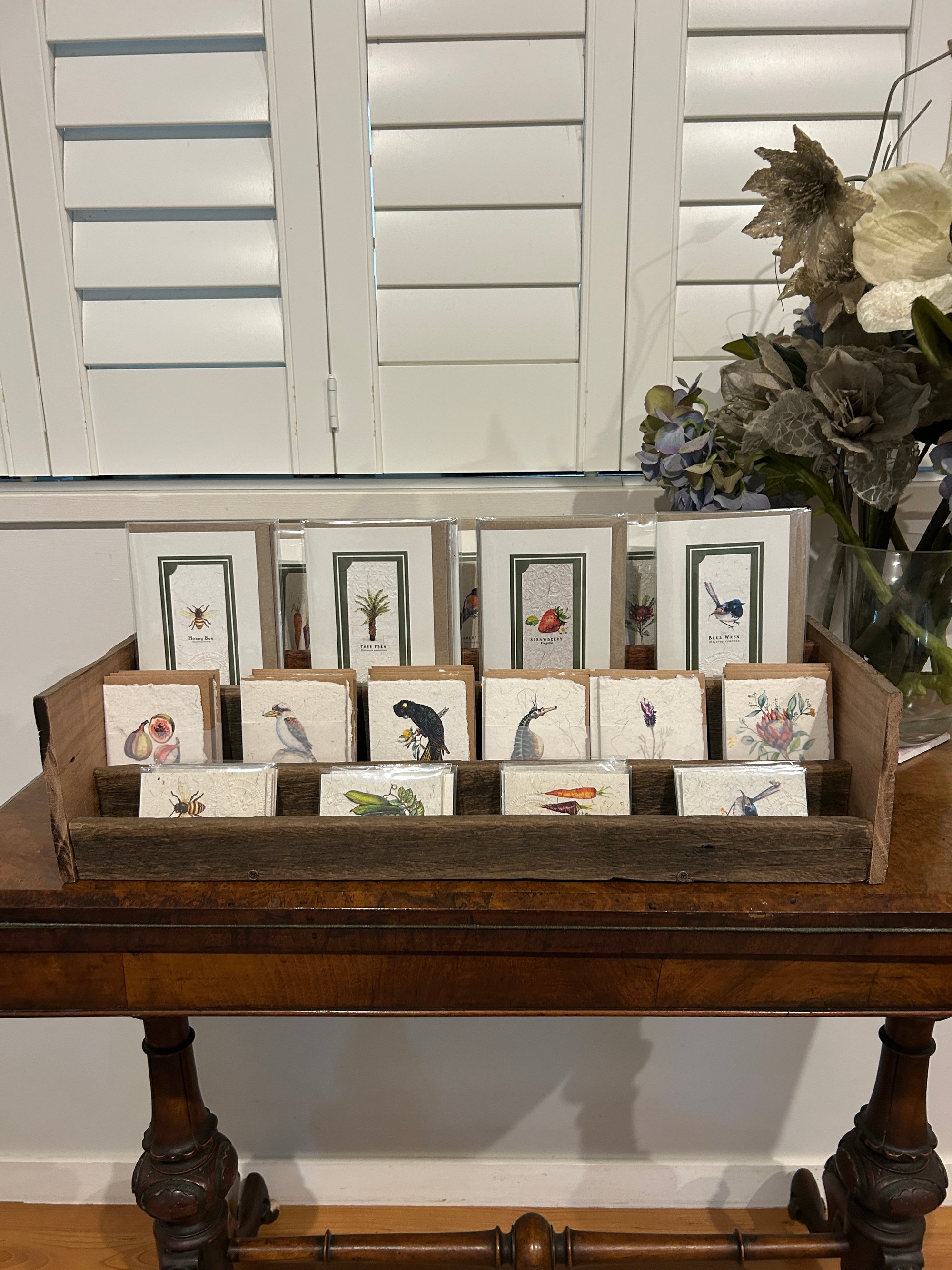 Beautiful cards and prints by Tasmanian artist Joanna Gair. Each item is produced on traditionally handmade paper using a variety of natural materials and plant fibres.
